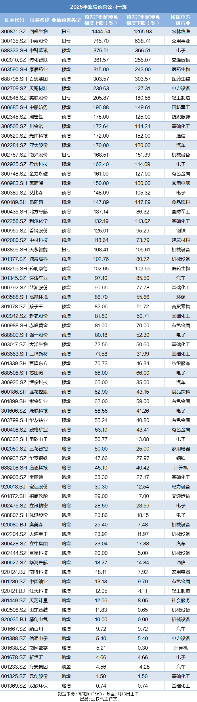 与预亏企业集中形成对比的是,预增公司呈现鲜明的结构性特征,资源类企业受益于价格周期上行,科技制造企业凭借技术创新实现突破,两大主线共同支撑起业绩增长阵营。